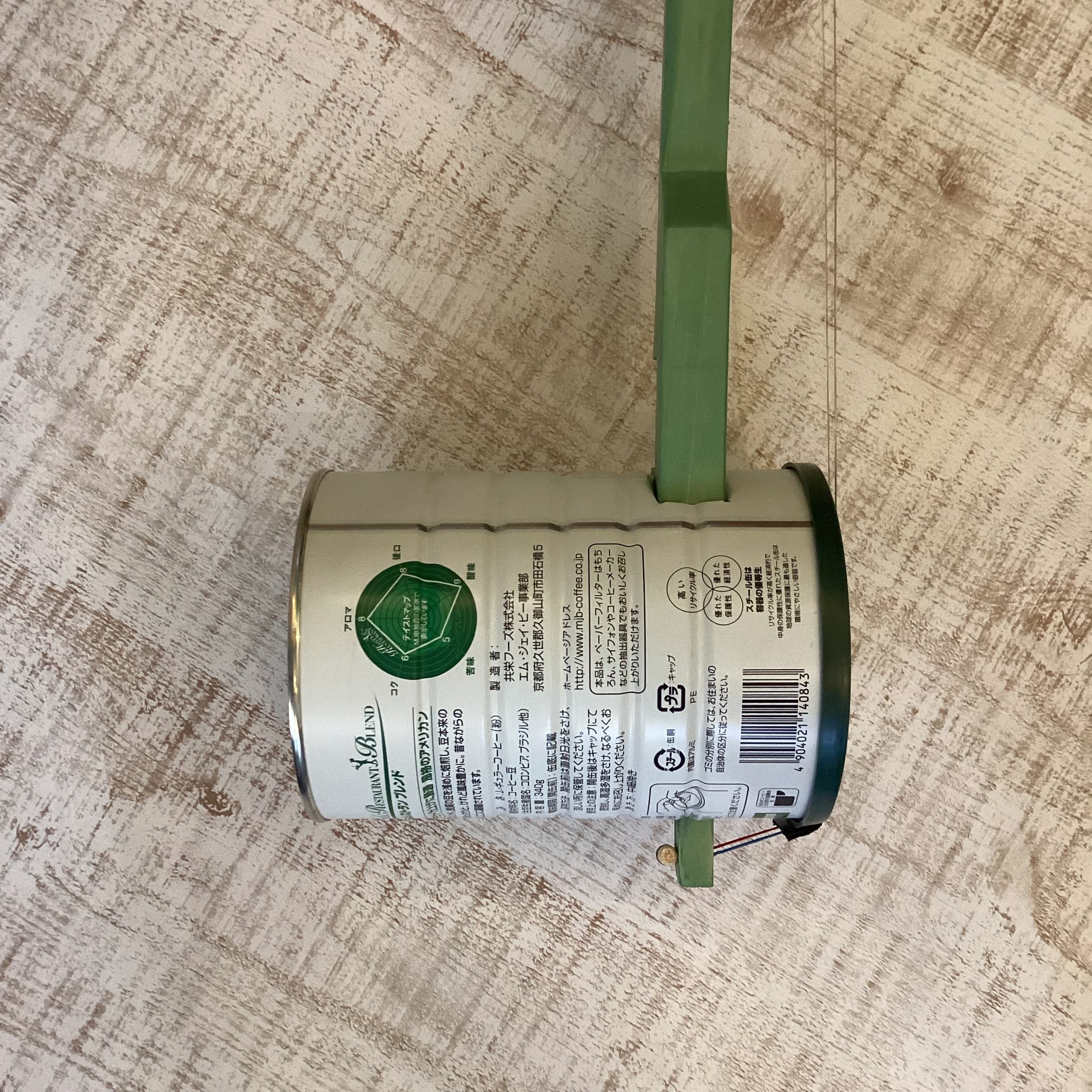 コーヒー豆を保存しておく缶を使った見た目も個性的な二胡